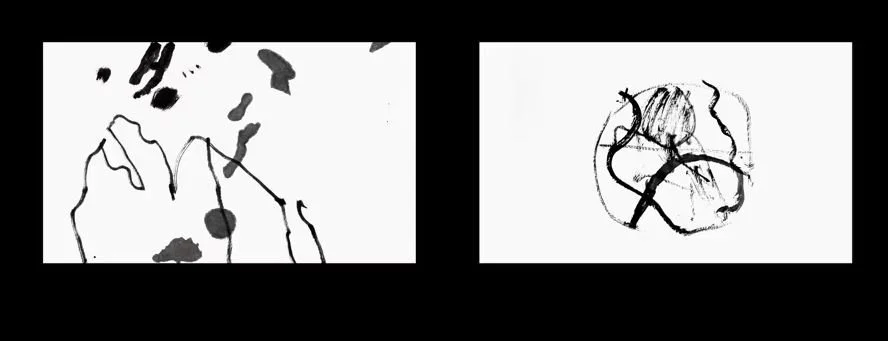 The hand drawn ink animation is made for two-screen projection, deliberately drifting in and out of sync with each other. With no stable connection, the films cooperate and collide. Buddhist ideas of non-duality come to mind as we take off and find ourselves tethered at the same time. The drawings swirl, hats fly off, a shout goes up- what’s yours is mine, we’re going to be fine somehow. The work marks a period of great uncertainty- and considerable excitement- as I sought the courage to make big change happen, and to step out into a high wind.”